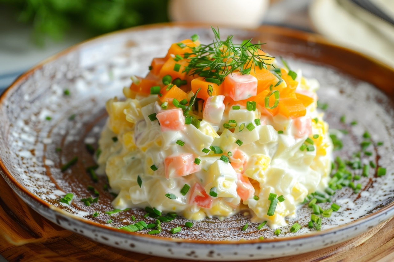 Rus salatasi (pommes de terre, œuf, cornichons, carottes, mayonnaise)